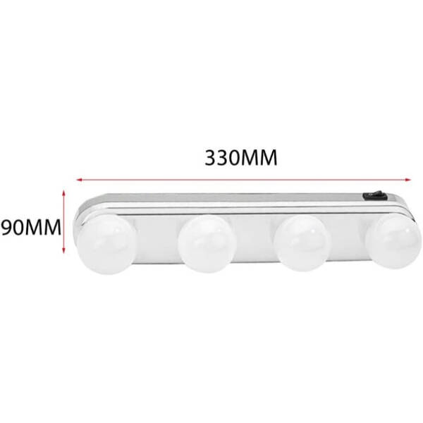 Ayna Makyaj Işığı, güçlü ve homojen aydınlatma sağlayan 4’lü LED ampul tasarımıyla makyaj uygulamalarında profesyonel bir ışık deneyimi sunar. 330 mm genişliğe ve 90 mm yüksekliğe sahip kompakt yapısı sayesinde her boyutta ayna ile rahatlıkla kullanılabilir. Pil ile çalıştığı için kablo karmaşasına gerek kalmaz ve istenilen her yere kolayca taşınarak kullanılabilir. Doğal beyaz ışığı yüz hatlarını netleştirir, makyajda renk tonlarının daha doğru görünmesini sağlar. Makyaj masaları, banyo aynaları, giyinme alanları ve taşınabilir kullanım için ideal bir çözüm sunar. Hem pratik hem de estetik yapısıyla makyaj rutinini kolaylaştıran kullanışlı bir yardımcıdır.