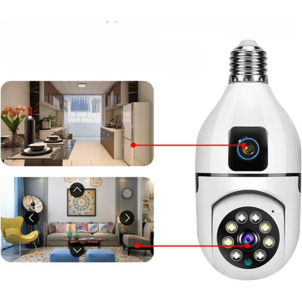 1 adet Çift Lensli Duy Girişli Kablosuz Ampul Kamera