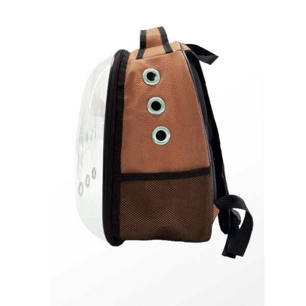 Deri astronot kedi ve köpek taşıma çantası, evcil hayvanınızı konforlu ve güvenli şekilde taşımanızı sağlar. Kahverengi şık dış yüzeyi kaliteli suni deriden üretilmiş olup dayanıklıdır ve kolay temizlenebilir yapıdadır. Astronot tasarımlı şeffaf kapsül bölmesi, evcil dostunuzun dış dünyayı rahatça görebilmesini sağlar. Çanta, hava alabilirliği artıran delikli yapısı sayesinde uzun süreli kullanımlarda bile ferah bir ortam sunar. Omuz askılığı ve üst sapı ile hem elde hem omuzda taşınabilir. Özellikle seyahatlerde, veteriner ziyaretlerinde ya da günlük gezintilerde pratik ve estetik bir çözümdür. Kediler ve küçük ırk köpekler için uygundur.