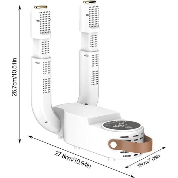 Teknoloji ve konforu bir araya getiren Dijital Ayakkabı Kurutma ve Isıtma Makinesi, ayakkabılarınızı kısa sürede hijyenik bir şekilde kurutur ve istenmeyen kokuları ortadan kaldırır. Eşsiz ısı dağılımı sağlayan gözenekli tasarımı sayesinde 360° sıcak hava sirkülasyonu oluşturur, böylece ayakkabı ve çoraplarınızı eşit şekilde kurutur.Dijital ekran üzerinden sıcaklık ve süre ayarı yapılabilir, bu sayede hassas kumaşlı ayakkabılar güvenle kurutulabilir. Sessiz çalışmasıyla rahatsızlık vermez ve enerji tasarrufludur. Sadece ayakkabılar değil, eldiven, bere ve çorap gibi eşyalar için de kullanılabilir. 27.8x26.7x18 cm boyutuyla kompakt tasarımıyla kolay taşınabilir ve yer kaplamaz.