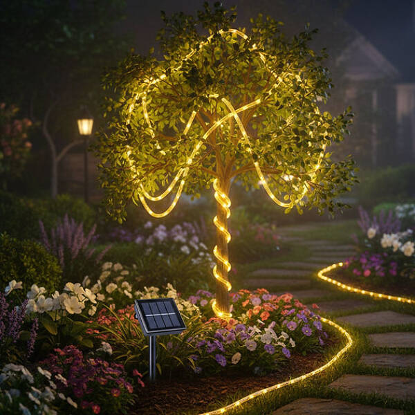 Güneş enerjili 12 metre bahçe aydınlatma, şık tasarımı ve uzun kablo yapısı sayesinde bahçeler, yürüyüş yolları, teraslar ve ağaç süslemeleri için ideal bir çözümdür. Solar paneli sayesinde gün boyunca güneş ışığını depolayarak akşam hava karardığında otomatik olarak yanar ve bahçenize dekoratif bir görünüm kazandırır. Kablo üzerinde yer alan LED’ler güçlü aydınlatma sağlarken düşük enerji tüketimi ile çevre dostu kullanım imkânı sunar. IP65 su geçirmez özelliği sayesinde yağmur ve nemli ortamlarda da güvenle kullanılabilir. Kolay kurulum özelliği sayesinde kablolama ya da elektrik bağlantısına ihtiyaç duymazsınız.
