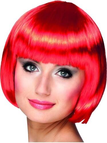 1 Adet Kırmızı Renk Küt Saç Parti Peruğu