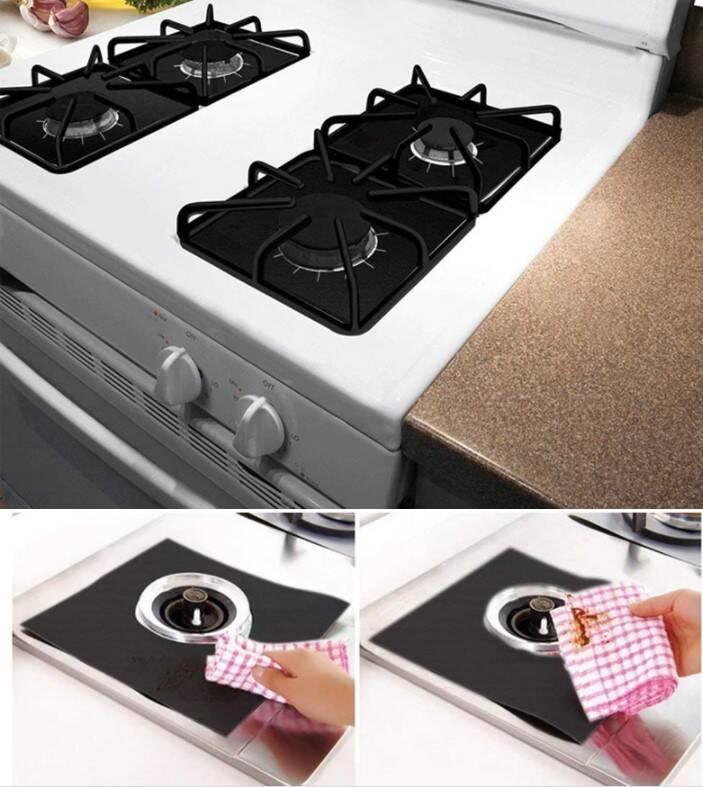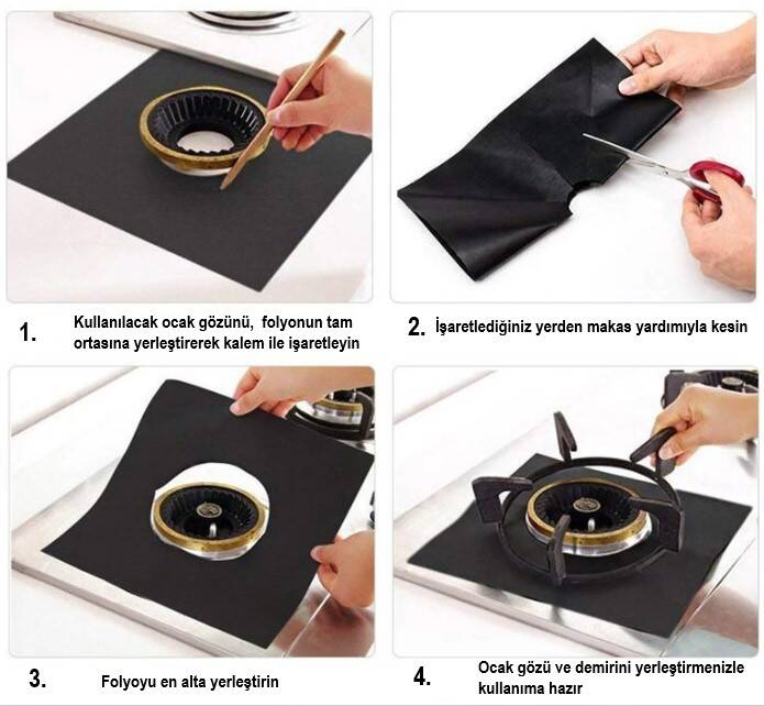 4 Adet Siyah Renk Yanmaz Yapışmaz Ocak Koruyucu Folyo