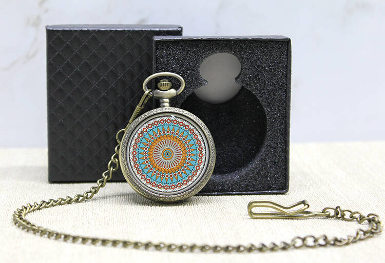 1 adet Özel Kutulu Mandala Deseni Köstekli Saat