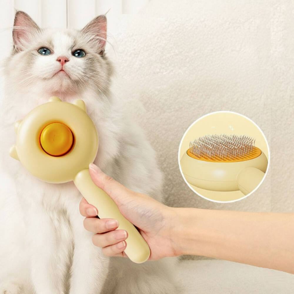 PATİ TASARIMLI OTOMATİK TEMİZLENEN EVCİL HAYVAN TARAĞIÜrün ÖzellikleriPati tasarımlı otomatik temizlenen evcil hayvan tarağı, kedi ve köpeklerin tüy bakımını pratik, hızlı ve konforlu hale getirmek için tasarlanmıştır. Ergonomik sapı sayesinde ele rahat oturur ve tarama sırasında kontrolü artırarak hem evcil hayvanın hem de kullanıcının konforunu ön planda tutar. Tarak arkasında bulunan pratik düğme mekanizması, tarama sırasında toplanan tüylerin saniyeler içinde yüzeye itilmesini sağlar ve tek hamlede temizlenmesine imkân tanır. Bu özellik sayesinde tarak üzerinde biriken tüylerle uğraşmadan hijyenik ve zahmetsiz bir kullanım sunar. Yuvarlatılmış tarak uçları, cilde zarar vermeden nazikçe tarama yaparak ölü tüylerin, tozun ve kirin etkili şekilde toplanmasına yardımcı olur. Düzenli kullanımda tüy dökülmesini azaltmaya destek olurken, evcil hayvanın tüylerinin daha bakımlı ve parlak görünmesine katkı sağlar. Günlük bakım rutini için uygun olan bu tarak, ev ortamında kolay kullanım sunar ve evcil hayvan sahipleri için vazgeçilmez bir bakım ürünüdür.Paket İçeriği1 adet Pati Tasarımlı Otomatik Temizlenen Evcil Hayvan Tarağı