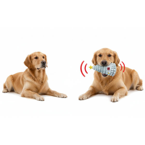 Sesli Çam Ağacı Tasarımlı Oyuncak, şık yılbaşı konsepti ve eğlenceli ses efektleriyle köpeğinizin oyun keyfini ikiye katlar. Dayanıklı dokusu sayesinde diş ve çene hareketlerine karşı üstün direnç gösterir ve uzun süre yıpranmadan kullanılabilir. Yumuşak ama sağlam malzemesi, hem çiğneme hem yakalama oyunlarında güvenli bir deneyim sunar. Sıkıldığında çıkan ses, köpeğinizin merak ve av içgüdüsünü tetikleyerek oyunu daha heyecanlı hale getirir. Hafif yapısı sayesinde köpeğiniz rahatlıkla taşıyabilir ve ister ev içinde ister dış mekânda keyifle oynayabilir. Toksik madde içermeyen güvenli materyaller kullanıldığı için patili dostunuzun sağlığına tamamen uygundur. Temizlenmesi kolay yüzeyi hijyenik bir kullanım sunarken yılbaşı temalı sevimli çam ağacı tasarımı da oyuncağı daha cazip hale getirir.